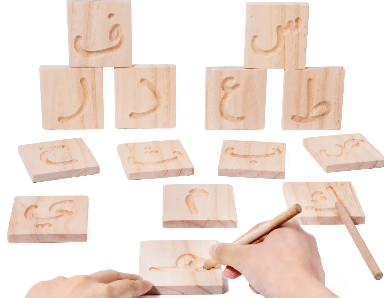 The Funbee Carving Arabic Set is a Montessori-inspired educational toy designed to help young children practice Arabic letters and numbers. Perfect for early language development, this wooden set is safe, fun, and engaging for kids ages 3+, making learning both exciting and interactive.